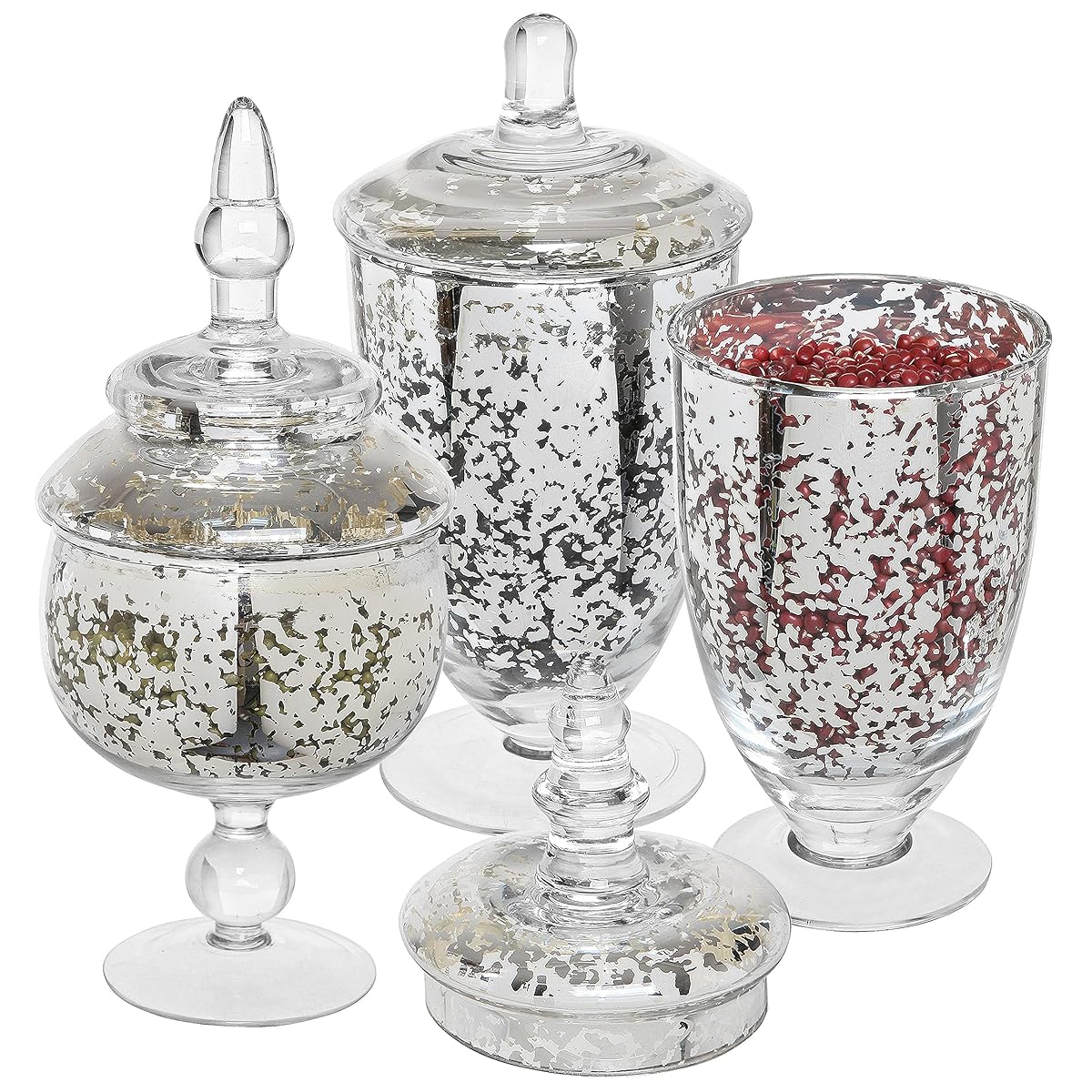 Amalfi décor apothecary jars set of 3 clear glass candy dish holder with metal lids cookie jar buffet display, silver amalfi décor. Bestseller #10 best apothecary jar with lid fills. Set of heavy cut glass trinket jars with solid silver lids. Clear glass jars showcase products with high clarity, while amber. Enhance your home decor with glass apothecary jars all over the place.